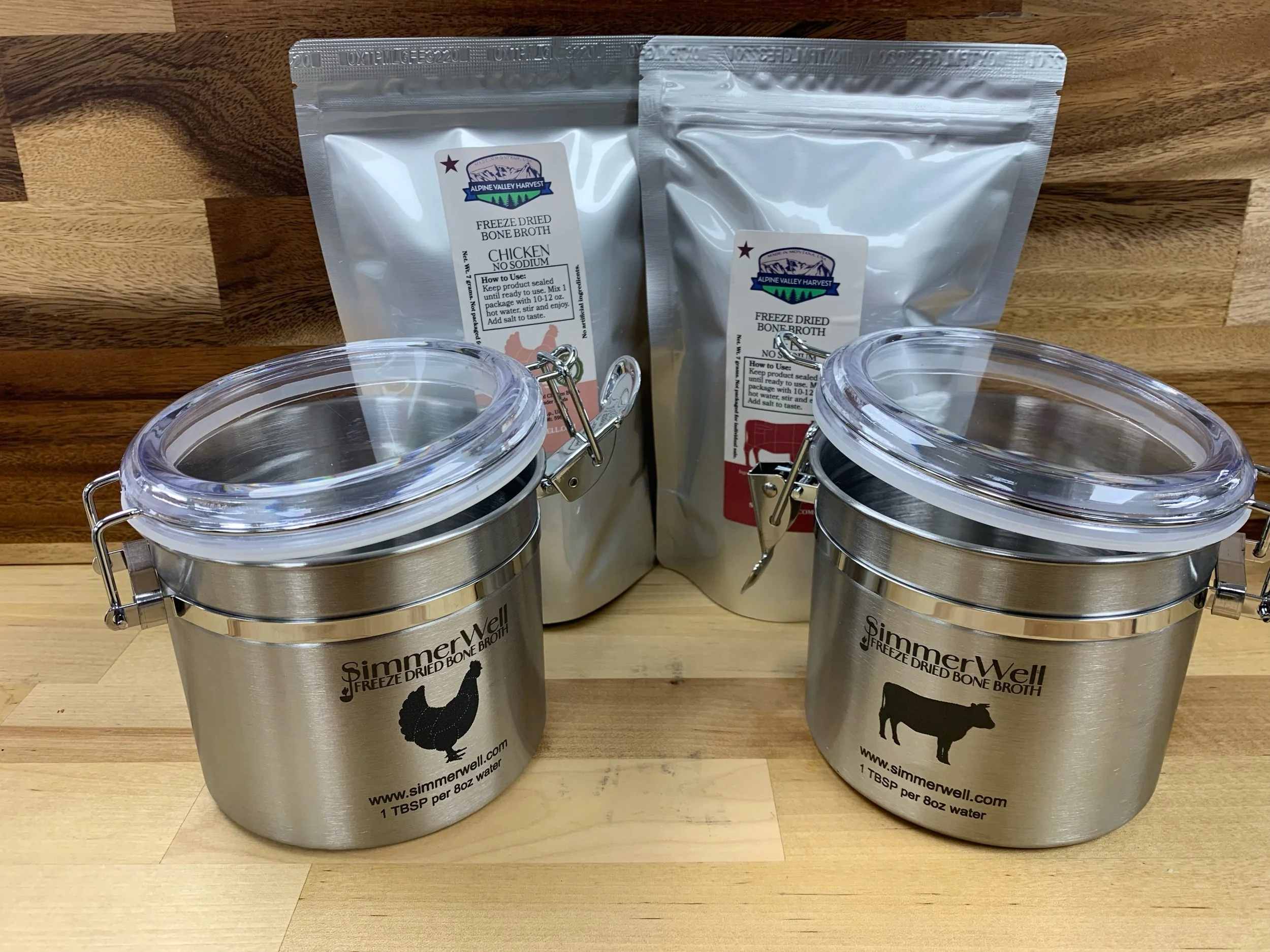 Categories: All Bone Broth Merchandise Gift Card Bone Broth Simmer Well Freeze Dried Bone Broth - Beef ONLY $50.00 View Options 5 Gallon Broth Pouch from $125.00 View Options 2.5 Gallon Broth Pouch from $79.00 View Options Sampler Pack $50.00 View Options Simmer Well Freeze Dried Bone Broth - Beef $50.00 View Options Simmer Well Freeze Dried Bone Broth - Chicken $50.00 View Options